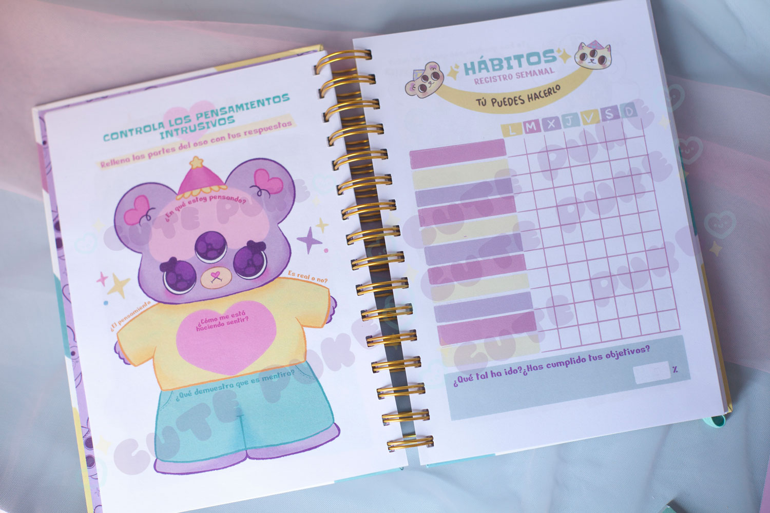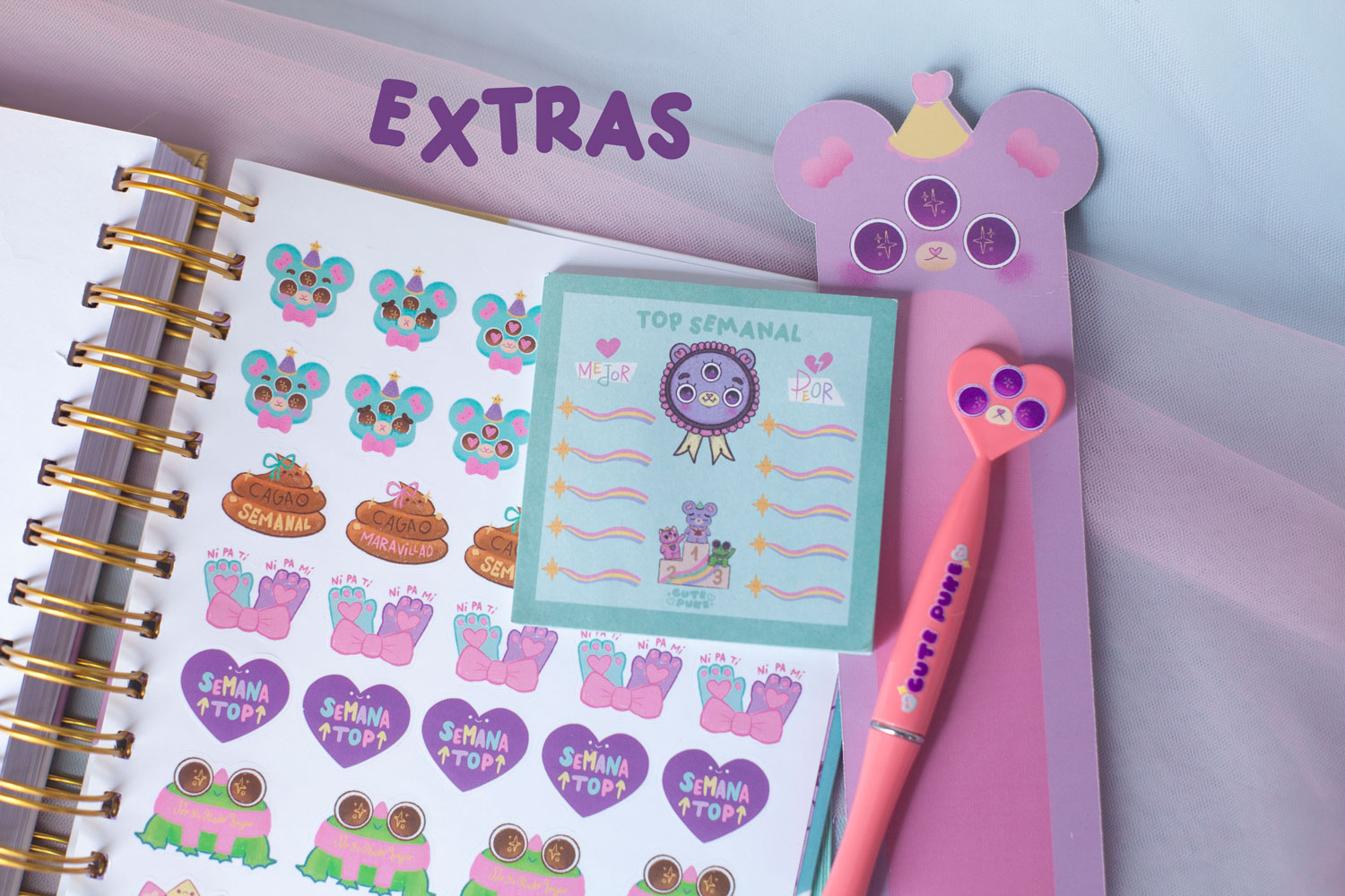 Marcapáginas de Cuti que se coloca y quita fácilmente de la espiral, para que nunca te pierdas.